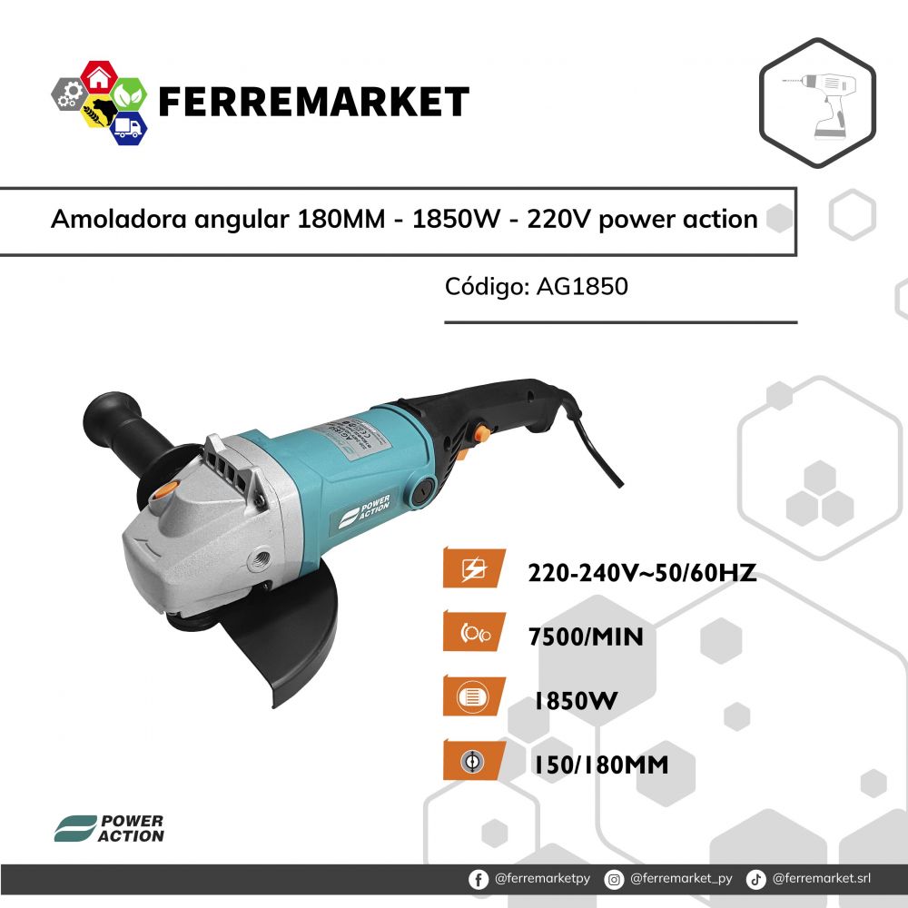 AMOLADORA ANGULAR 180MM - 1850W - 220V POWER ACTION