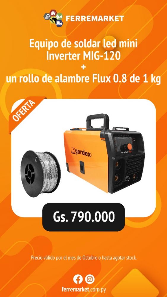 EQUIPO DE SOLDAR LED MINI INVERTER MIG-120 + UN ROLLO DE ALAMBRE FLUX 0.8 DE 1 KG