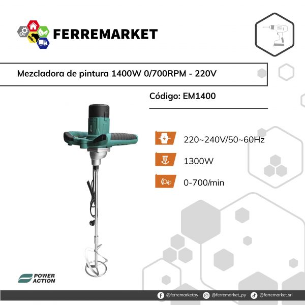 MEZCLADORA DE PINTURA 1400W 0/700RPM - 220V - POWER ACTION