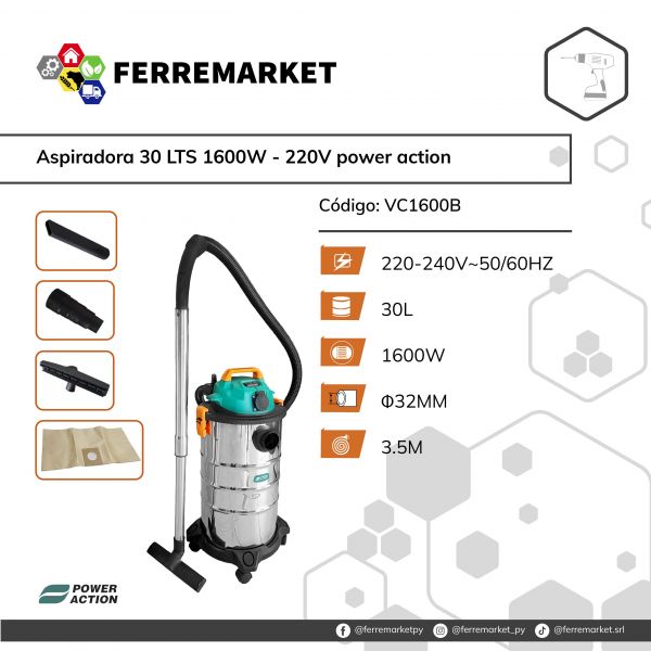 ASPIRADORA 30 LTS 1600W - 220V POWER ACTION