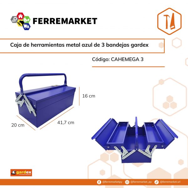 CAJA DE HERRAMIENTAS METAL AZUL DE 3 BANDEJAS GARDEX