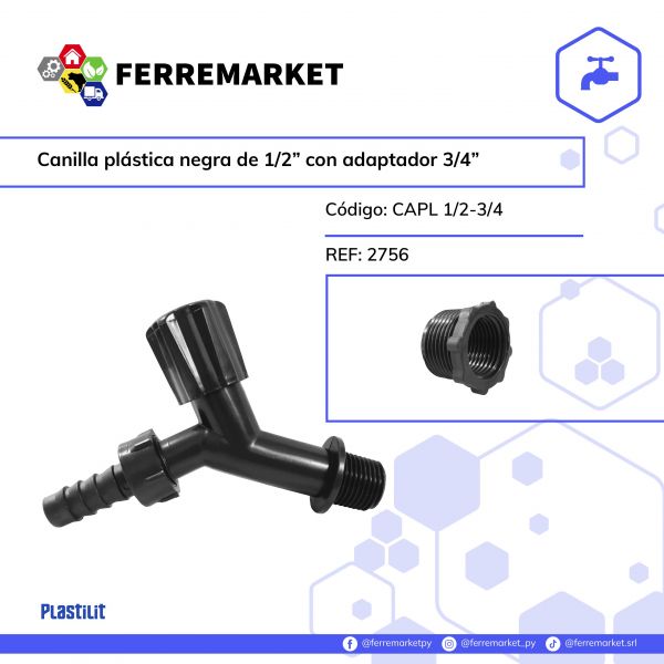 CANILLA PLASTICA NEGRA 1/2 CON ADAPTADOR 3/4 PLASTILIT