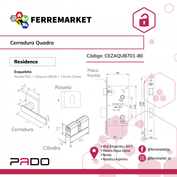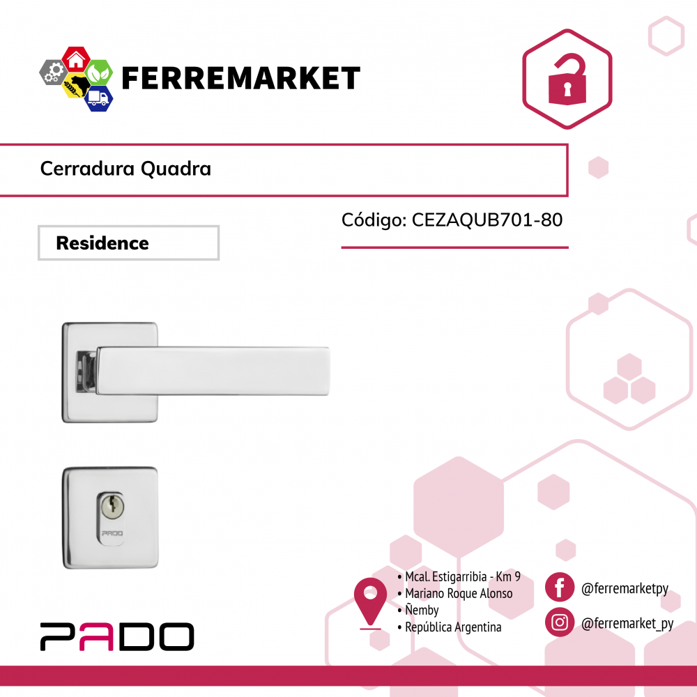 CERRADURA QUADRA 701-80 ROSETA ZAMAC PADO 40 MM