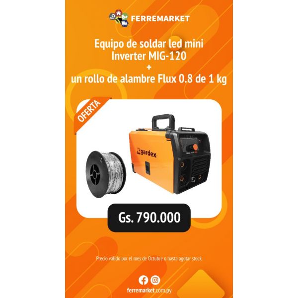 EQUIPO DE SOLDAR LED MINI INVERTER MIG-120 + UN ROLLO DE ALAMBRE FLUX 0.8 DE 1 KG