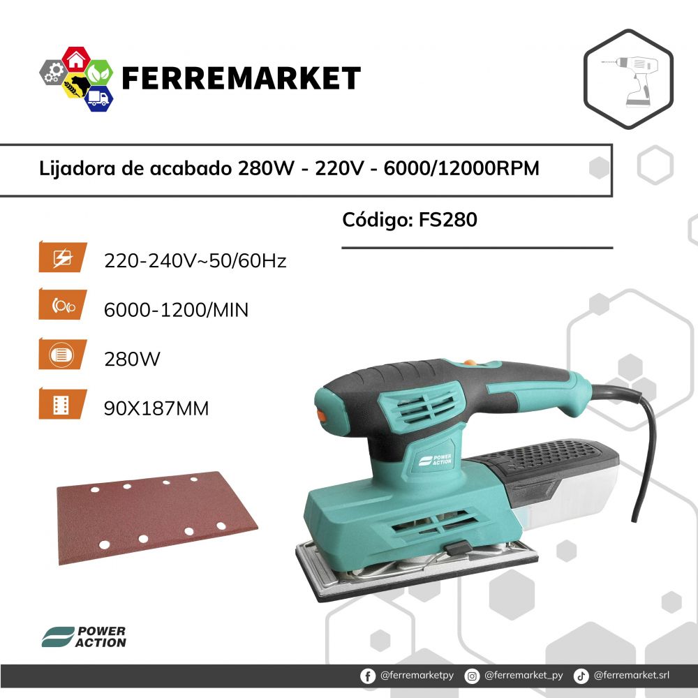 LIJADORA DE ACABADO 280W - 220V - 6000/12000RPM POWER ACTION