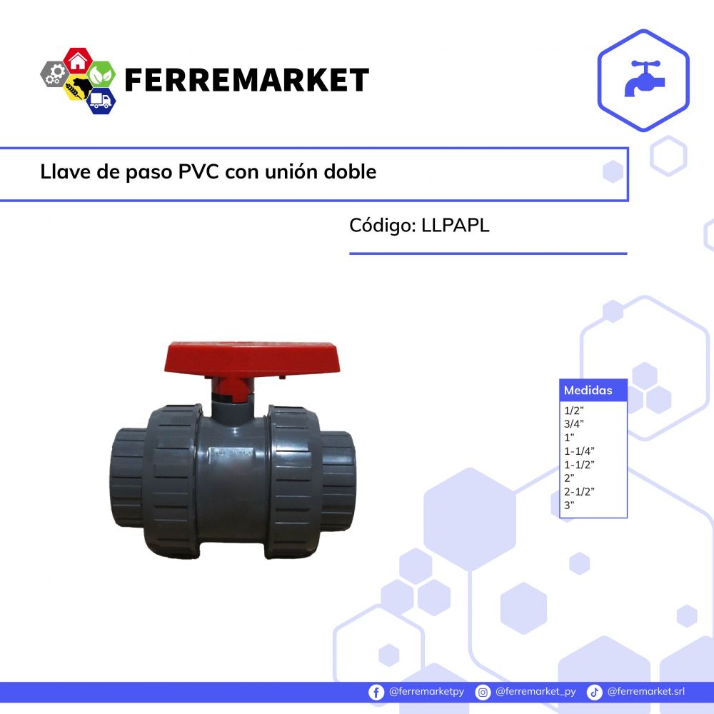 LLAVE DE PASO PVC CON UNION DOBLE