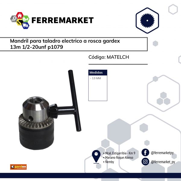 MANDRIL PARA TALADRO ELECTRICO A ROSCA GARDEX 13M 1/2-20UNF P1079