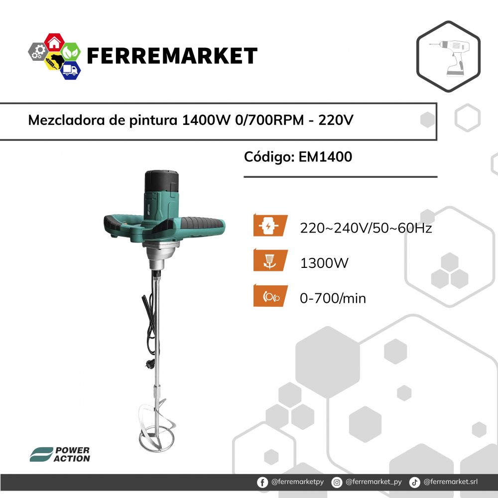 MEZCLADORA DE PINTURA 1400W 0/700RPM - 220V - POWER ACTION