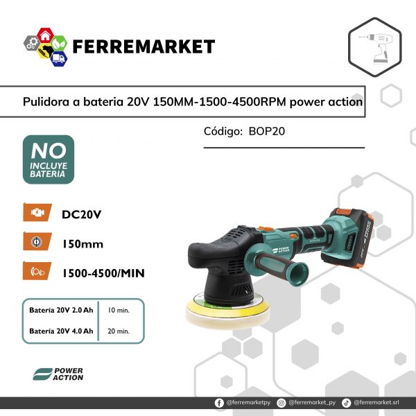 PULIDORA A BATERIA 20V 150MM - 1500-4500RPM POWER ACTION
